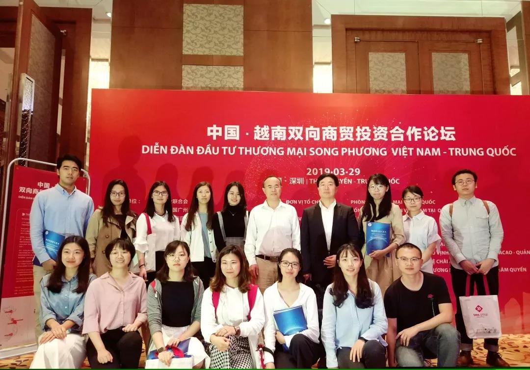 国际治理创新研究院院长赵龙跃教授、经济贸易学院副院长肖奎喜教授带领部分创新研究院学员参加了中越投资论坛。参与此次论坛的中外嘉宾还有中国商业联合会副会长傅龙成先生、越南驻广州总领事邓世雄先生、越南TMS集团总裁阮伯论先生、深圳市对外经济贸易与投资发展促进会执行会长江红跃等。