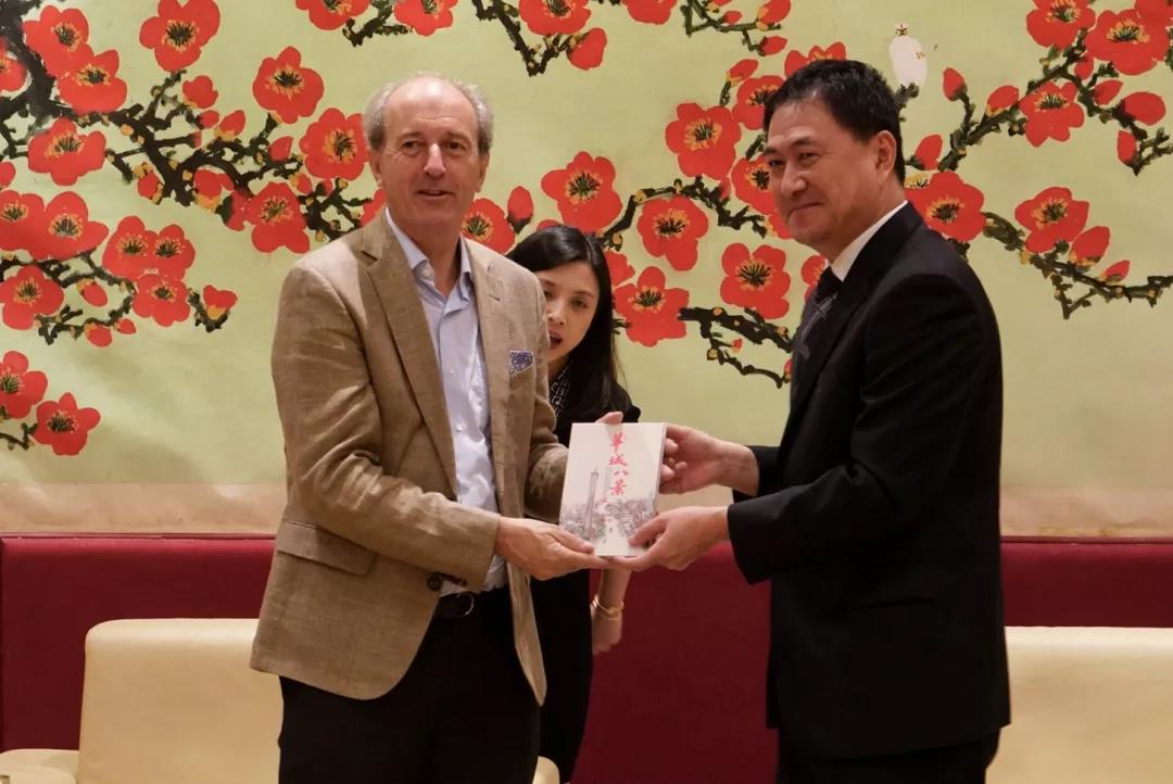 (隋广军书记向来访专家介绍广东外语外贸大学)