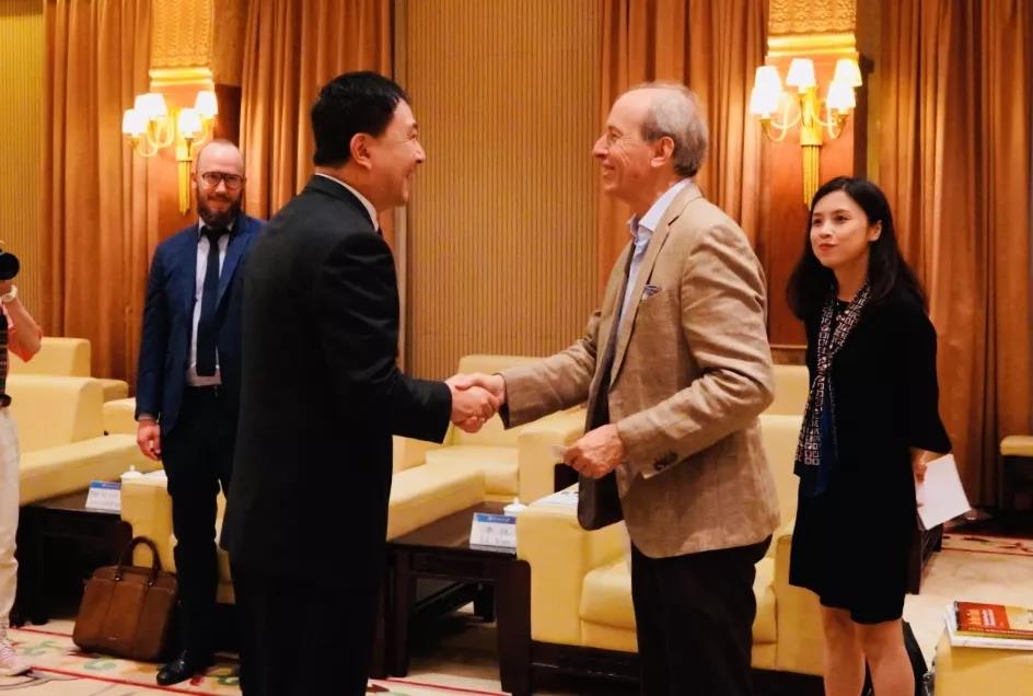 2019年5月18-23日广东外语外贸大学与世界银行合作举办世界银行周系列活动,5月19日邀请世界银行南亚局前首席经济学家、现任高级顾问Martin Rama博士、世界银行南亚地区首席经济学家办公室高级经济学家李悦博士和世界银行南亚地区首席经济学家办公室经济学家Robert Beyer博士莅临广外举行讲座。讲座举行之前,广外党委书记隋广军教授于学校行政楼贵宾厅会见世界银行专家,广东省教育厅交流合作处处长李金俊、国际治理创新研究生项目指导专家蔡春林教授、国际处处长柯晓华教授、研究生院院长胡文涛教授、经济贸易学院院长张建武教授、国际治理创新研究院院长赵龙跃教授参与会见。
