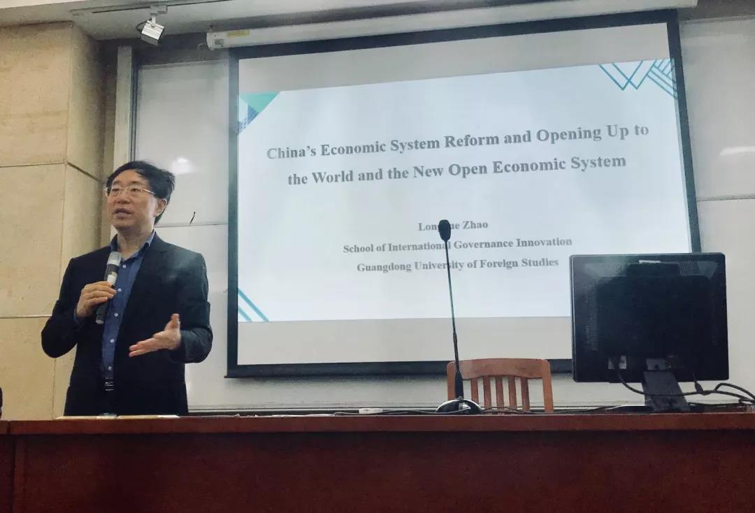 2019年6月18日下午,广东外语外贸大学国际治理创新研究院院长赵龙跃教授应邀参加中非法律人才交流论坛,在广外北校区就“中国的改革开放与开放型经济体制”做专题讲座。本次讲座由广东外语外贸大学法学院副院长韩永红教授主持。