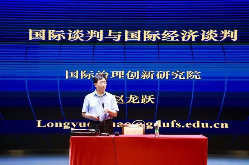 7月9日下午,广东外语外贸大学国际治理创新研究院院长赵龙跃教授在北校区第六教学楼报告厅进行国际谈判系列授课III,主题为“国际谈判与国际经济谈判”。本次讲座主要分为两部分,第一部分为国际治理创新研究院概述,赵龙跃教授着重从设立目标、培养方案和主要职能三个方面进行了介绍;第二部分为国际谈判系列课程,分别从谈判的重要性和复杂性、三个核心要素、组织工作的重要性等方面对国际经济谈判展开讲座。