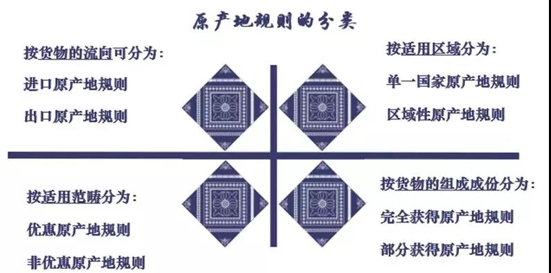 依照不同的分类标准,原产地规则主要有以下四种分类: