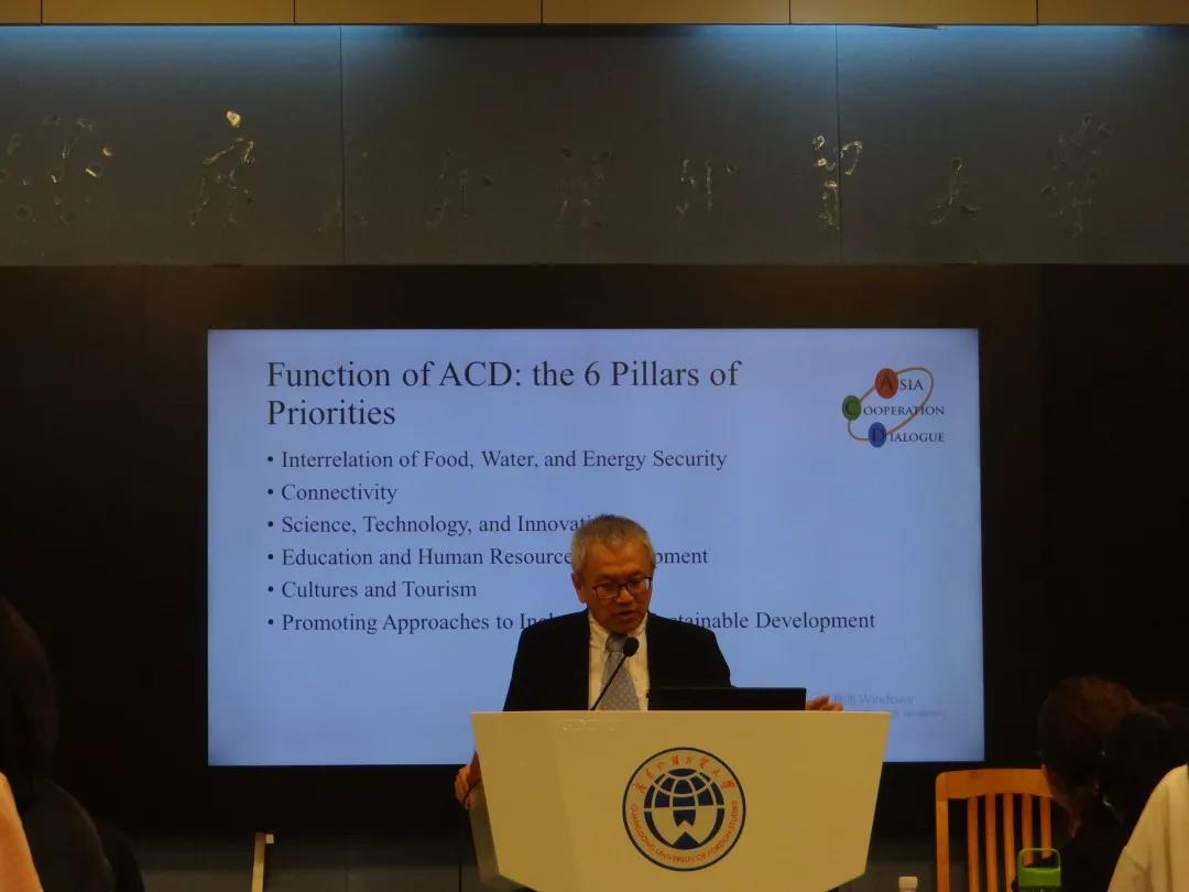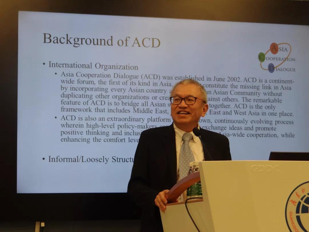 2019年11月8日下午,亚洲合作对话(ACD)秘书长帕钗先生(Mr.Pornchai )应邀到访我校,并就亚洲合作对话展开专题讲座。帕钗先生围绕亚洲合作对话的背景、宗旨、职能以及工作机会四个方面开展讲座。