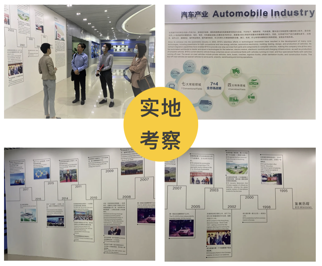 调研组首先参观了比亚迪总部展厅,对比亚迪的发展历程、发展理念、主要业务和最新情况进行了初步的了解。随后双方就比亚迪在拉美的业务布局和发展情况进行了广泛深入的交流。