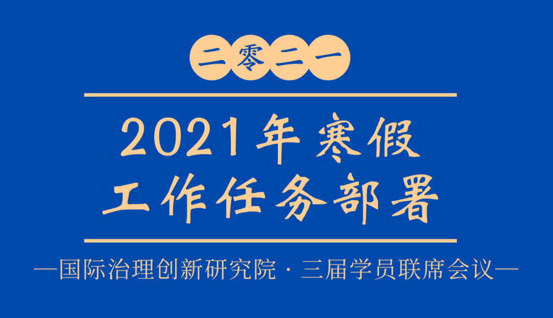 2021年1月26日晚,国际治理创新研究院组织2018级、2019级和2020级全体师生召开线上寒假工作会议,会议内容主要围绕研究院的人才培养、研究院寒假期间的学习和工作任务的布置。