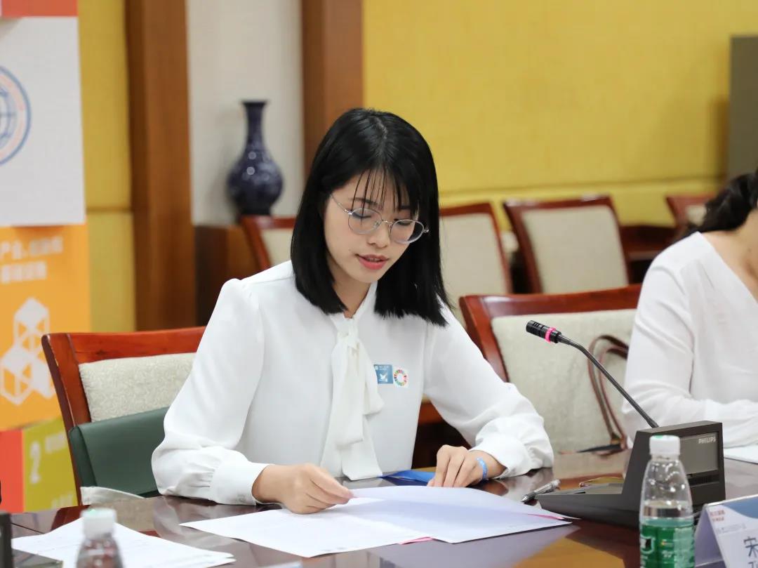 国际治理创新研究院2018级的学生代表宋紫婷分享了参与E4J项目翻译的感想和体会。宋紫婷在会上分享了自身的两个体会:第一是使命,各方所承担的使命与目标促成了这一次翻译工作的完成;第二是团队合作,同学们分组翻译、紧密协作、集思广益,共同为同一个目标而努力。