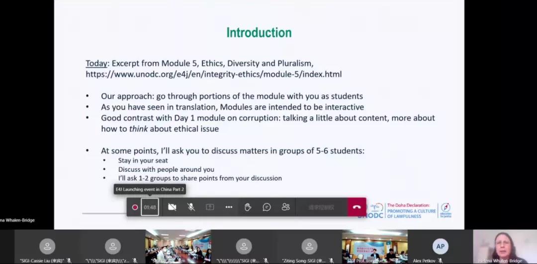 此次,海伦娜·惠伦·布里奇教授与国际治理创新研究院师生共同学习E4J诚信和伦理道德专题的内容,并通过分组交流讨论的形式营造互动氛围,思想碰撞促进理念交流。