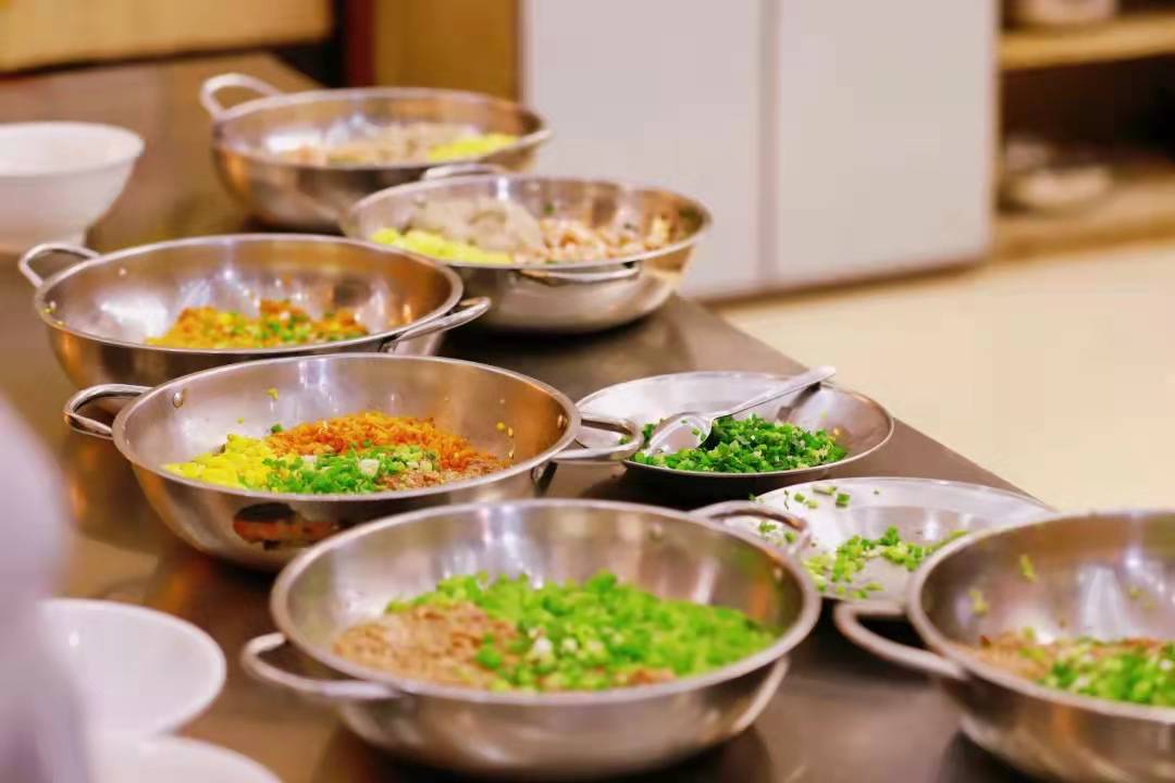 活动当天,食堂工作人员已预先准备馅料和工具。同学们在老师的带领下,同心协力制作饺子。素衣台案前,赵龙跃院长亲自教同学们擀面皮,他轻转擀面杖,细撒白面粉,耐心传授技巧;两位老师巧手赛天工,亲手示范包饺子。手中的饺子镶上了精致的花边,化身造型独特的元宝、鲜花和麦穗。同学们认真观察,动手尝试,发挥创意,制作出五颜六色的面皮和造型各异的饺子。饺子下锅,宛若清水飘芙蓉;饺子出炉,如同元宝落玉盘。之后,师生品尝饺子及各式配菜。