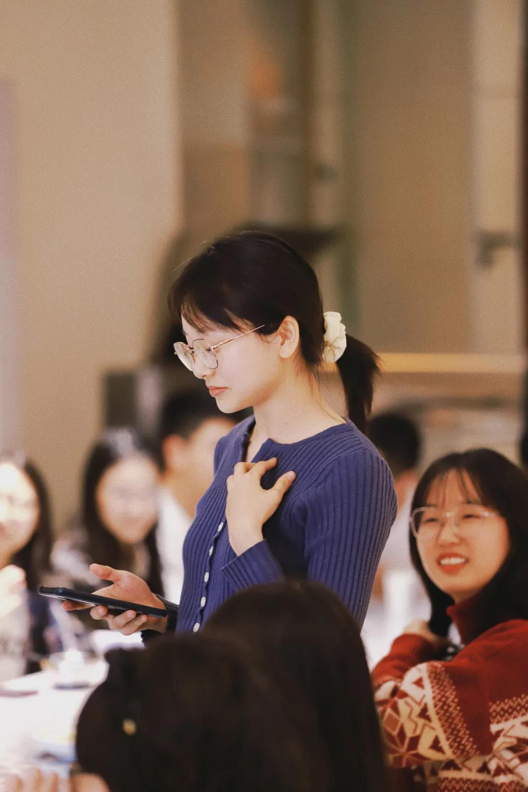 用餐完毕,大家围坐一桌玩游戏。先是紧张刺激的击鼓传花,再有报数游戏和“谁是卧底”。两位老师精心设计了问答环节,同学们敞开心扉,相互交流。19级徐红梅同学以“开心”、“勇敢”、“感恩”和“期待”四词概括她此刻的心情,她表示自己在研究院学会勇敢,并感恩相遇,期待明天;20级易晶明同学表示在研究院遇到良师益友,受益匪浅,走出迷茫;21级李豪同学表示,第一次参加工作时自己尚不熟悉,但有勤加思索,善于发问;21级许亚雄同学表达对前辈的感谢,表示以学长学姐为榜样,学习沟通。除此之外,还有许多同学以乐传情。20级刘小枭、谈小甜、李键敏和黄梦玲等几位同学献唱歌曲《成都》、《如果有来生》和《千千阙歌》。歌声悠扬悦耳,在场师生齐声合唱,场面感人。