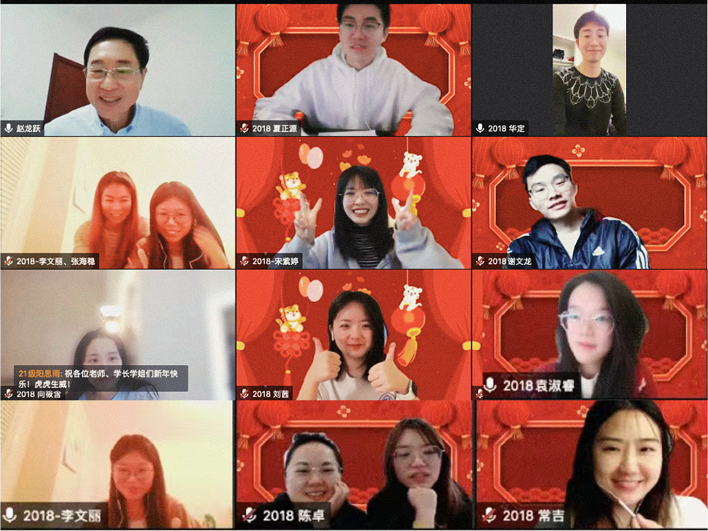 2022年1月28日晚上8:30-12:00,国际治理创新研究院成功举办线上新春联欢会,80多位来自2016-2021级的六届学生代表欢聚一堂,辞旧迎新!在这些学生代表中,有的正在美国英国学习深造、有的已经在国际组织或国内有关机构开始工作、有的正在祖国各地美好的家园欢度寒假迎接新年。赵龙跃教授主持联欢会,首先与参加联欢会的同学们共同祝福我们伟大祖国欣欣向荣、一日千里、国泰民安、繁荣昌盛!祝福我们的老师同学们假期快乐,阖家幸福,虎年吉祥,万事如意!