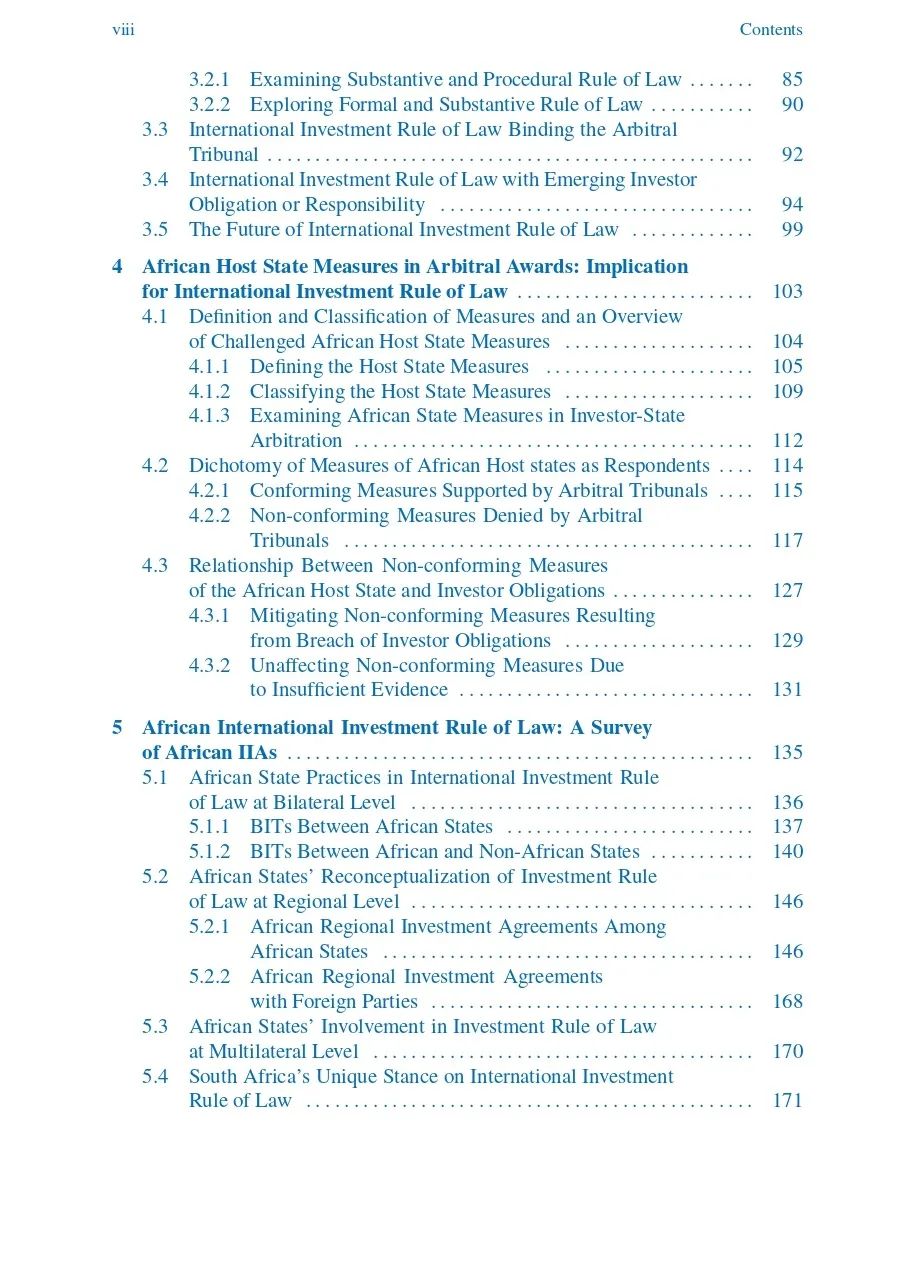 该专著研究与非洲投资相关的仲裁裁决,说明了非洲东道国受到限制和约束的措施,投资者对非洲东道国应遵守的义务,以提醒中国投资者注意这些措施以及应当承担的义务。当然,一些仲裁庭的裁决也显示了对非洲东道国的规制权以及投资者权利的尊重和保护。该专著还根据国际投资法治结构,对非洲国家对内和对外的双边投资条约和区域投资协定进行了研究,考察了绝大多数非洲国家对国际投资法治的积极态度和突出贡献,以及个别国家的抵制实践。