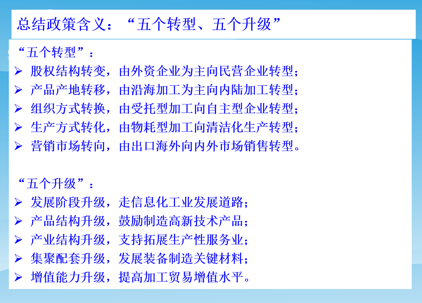 陈万灵教授主讲的内容分为五大部分。第一部分为全球价值链与加工贸易的理论认识,重点阐述了价值链三大环节、三个条件、动力机制、全球价值链治理以及企业在全球价值链中的融入与升级等。第二部分为加工贸易兴起与运行机制,聚焦于改革开放前后加工贸易的兴起,从加工贸易的定义、种类、运行与监管机制、层次等角度全面介绍中国加工贸易。第三部分深入挖掘广东加工贸易的发展状况与存在问题,从起步阶段、快速增长阶段、波动增长阶段、新世纪的发展与升级等时间段展开论述,条理清晰地指出相应问题与转型要求。第四部分系统分析驱动与制约因素两个方面,详细阐释了广东加工贸易转型升级的必然性与发展全过程。最后在第五部分,陈万灵教授介绍了空间置换策略、企业“转内销”策略与企业组织性质转型策略等范例,就前述内容深度思考,总结出众多宝贵的启示。