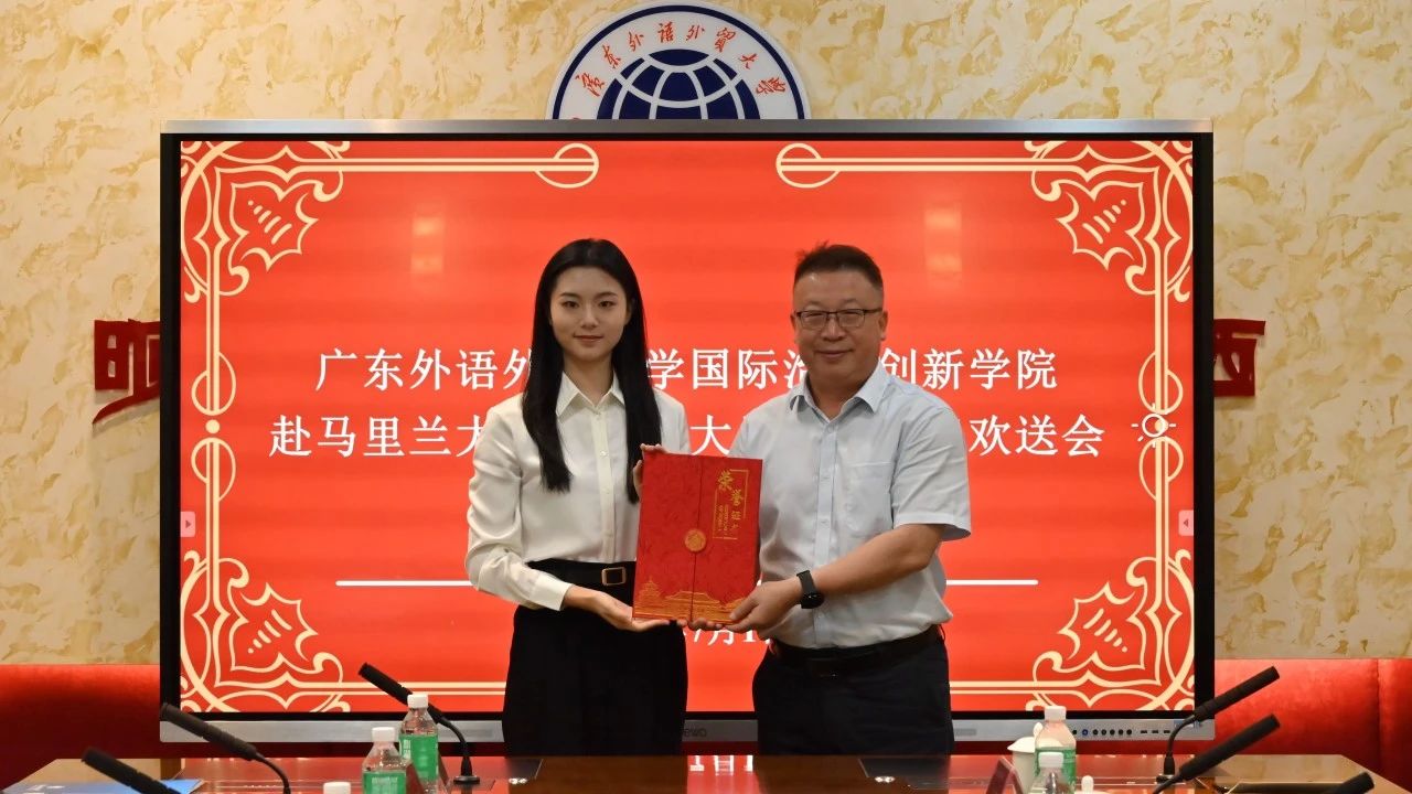 7月1日,学院举办2025年学子赴马里兰大学、欧洲大学学院学习欢送会。广东外语外贸大学党委常委、副校长谢伟光出席会议并致辞,国际交流合作部部长周鹏、学生就业创业中心主任康为茂、党委组织部副部长杨雄辉、学生工作部副部长侯运男、研究生院副院长蒋涌等一同出席。国际治理创新学院院长赵龙跃教授主持会议。