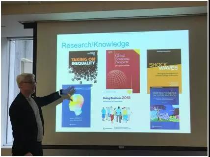 紧接着Herbert先生展示了多组数据,围绕“消除极端贫困”和“促进共享繁荣”两个使命展开介绍,此次介绍会的内容主要包括世界银行集团概况、合作现状以及入职世行三个部分。据了解, 世界银行,成立于1944年,后扩大为五个密切相关的开发机构组成的世界银行集团,包括国际复兴开发银行(IBRD)、国际开发协会(IDA)、国际金融公司(IFC)、多边投资担保机构(MIGA)以及国际投资争端解决中心(ICSID)五家机构。IBRD和IDA共同构成世界银行,向发展中国家的政府提供资金、政策咨询和技术援助。IDA的重点是援助世界最贫困国家,IBRD援助中等收入国家和资信良好的较贫困国家。IFC、MIGA和ICSID的重点是加强发展中国家的私营部门。世界银行集团通过这三家机构向私营企业、包括金融机构提供资金、技术援助、政治风险担保和争端调解服务。