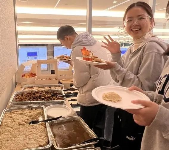 朱晓敏:深秋转冬的时候,感恩节来临了!这是我们到达美国后经历的第一个美国传统节日,SPP的老师们为我们准备了火鸡、玉米糕和纸杯蛋糕等美国代表性美食,还有可口的中国饮品杨枝甘露,中美师生欢聚一堂,享美食、话佳节,收获了满满的幸福与感动!