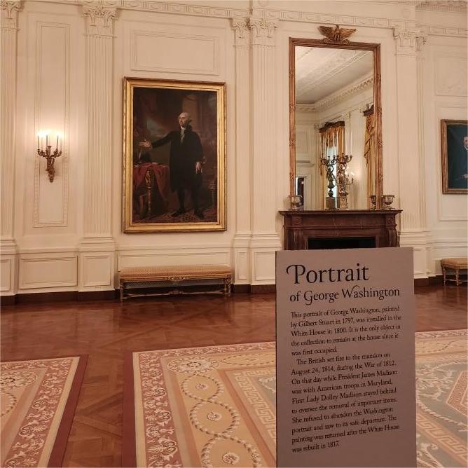 白宫至今已有两百多年的历史,在经历了战火损毁和一系列重建、扩建、和整修后,目前白宫主体建筑大致可分为东翼(The East Wing)、行政官邸(Executive Residence)和西翼(The West Wing)三大组合体。本次国际治理创新学院学子参观了白宫的东翼和行政官邸的地面层(The Ground Floor)和元首层(The State Floor)。