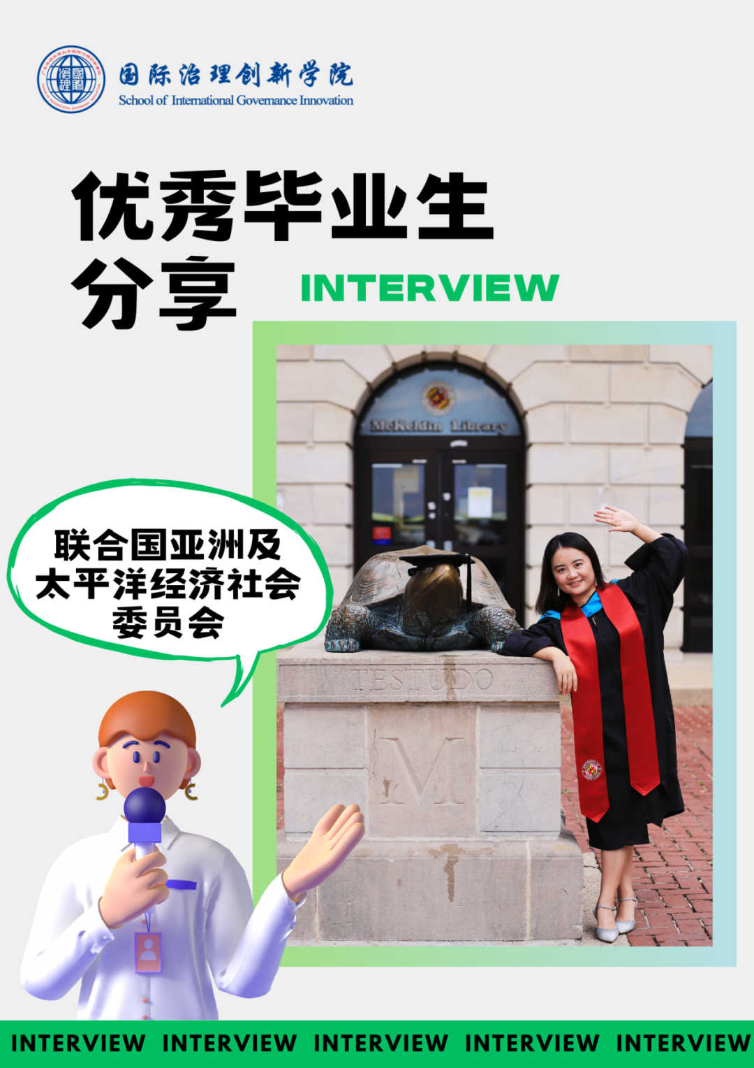徐红梅,国际治理创新学院、新闻与传播学院2019级学生,2021年获得广东外语外贸大学新闻与传播硕士学位,次年获得学校支持,公派赴美国马里兰大学继续深造,2023年8月获美国马里兰大学公共管理硕士学位,将于2024年4月前往联合国亚洲及太平洋经济社会委员会(U.N. Economic and Social Commission for Asia and the Pacific,简称“ESCAP”)实习工作。