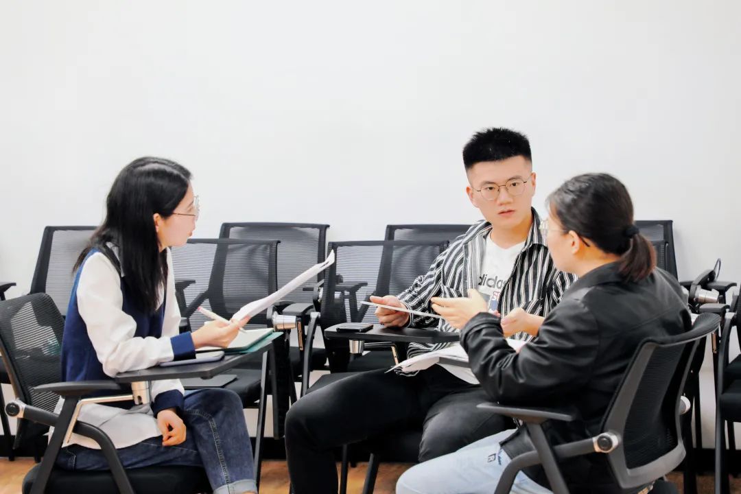 讲座结束后,国际谈判模拟练习环节开始,这也是本次学习活动中互动性最强的一个环节。同学们被随机分成若干个三人或四人小组,分别作为三个国家代表,根据事先准备的某项议题进行谈判。Larry Crump教授运用理论与实际相结合的教学模式,让学生在亲身参与中体验国际谈判氛围、运用国际谈判知识、领会国际谈判策略,充满趣味性的角色扮演模式也有助于提高学生的参与度,提升学习效率。模拟谈判过程中,现场气氛热烈,学生们为了自己所代表的国家利益,积极思考,各抒己见,甚至激烈争论,收获了独特的学习体验。