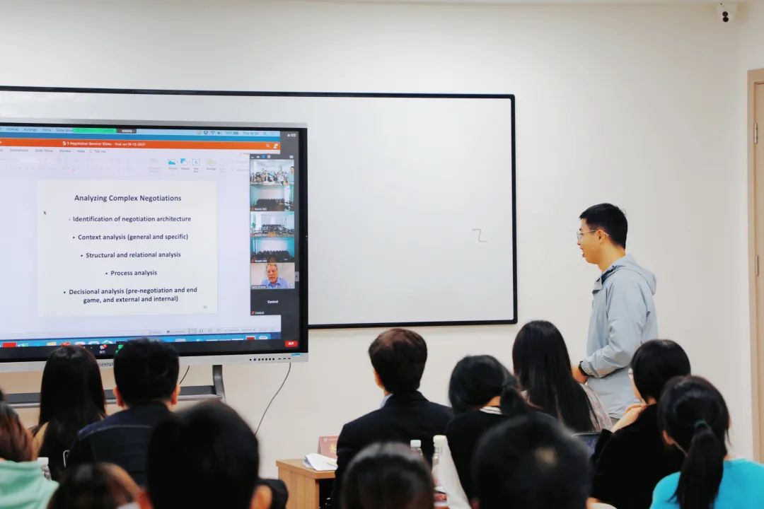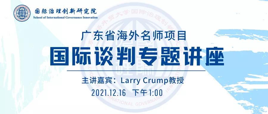 12月16日下午,国际治理创新研究院在知识城校区进德楼举办“国际谈判中的策略与力量”专题讲座。国际谈判专家、澳大利亚格里菲斯大学教授Larry Crump通过Zoom会议讲授国际谈判专业知识,组织国际谈判模拟练习。Larry Crump教授结合自身学术经历,深入浅出地介绍了国际谈判的理论知识和实际应用,通过组织同学们参加国际谈判模拟练习,激发同学们的学习兴趣,引导他们更加全面、深入地学习国际谈判的策略和方法。国际治理创新研究院赵龙跃教授主持讲座。