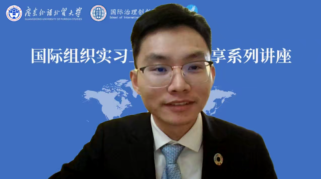 2022年12月24日上午,国际治理创新研究院于线上组织进行“国际组织实习工作经验分享系列讲座”第九讲。本次讲座由国际治理创新研究院院长赵龙跃教授主持,由研究院2018级学子谢文龙主讲。谢文龙以“协助联合国人力资源助理秘书长以支持可持续发展目标”为题,结合自身实习经历,从人力资源管理的专业角度出发,对联合国各工作部门、秘书处职员概况和实习任职攻略三个方面进行了介绍,重点讲述了自己申请实习的经历,并在讲座的最后分享了自己在实习期间参与的各项活动,畅谈自己工作中的所感所得。