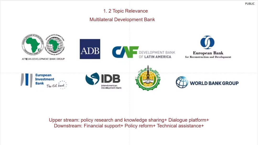 会议伊始,胡复儒介绍了包括世界银行集团和区域性多边开发银行在内的多边开发银行体系,着重突出其在支持国际社会发展方面的作用。这是一个非常完善的发展体系,利用自身资源从提供资金援助,促进政策改革,构建对话平台,给予政策支持等方面促进国际社会实现脱贫发展的目标。