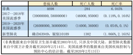 第一,美国流感的死亡率相对较低。据美国疾病控制中心的估计值(而非统计值),2019年10月至2020年2月的一个季度内,美国因流感而死亡的人数估计为12000至30000(死亡率在0.0387%到0.136%之间)。对比我国卫生部的统计数据,大陆Sars患者的死亡人数总计为284人(死亡率约为6.04%);第二,流感疫苗可起一定预防作用。Sars爆发前并无疫苗,而流感疫苗却在美国推广已久;第三,美国流感的严重程度存在年度差异。今年美国流感的主要病毒类型为乙型维多利亚系,与美国当季接种的流感疫苗毒株的匹配为58%,所以可控性较大。而2018年在美国流感以甲型H3N2为主,与疫苗匹配度低且并发症严重,所以当季死亡人数估计为46000至95000人。