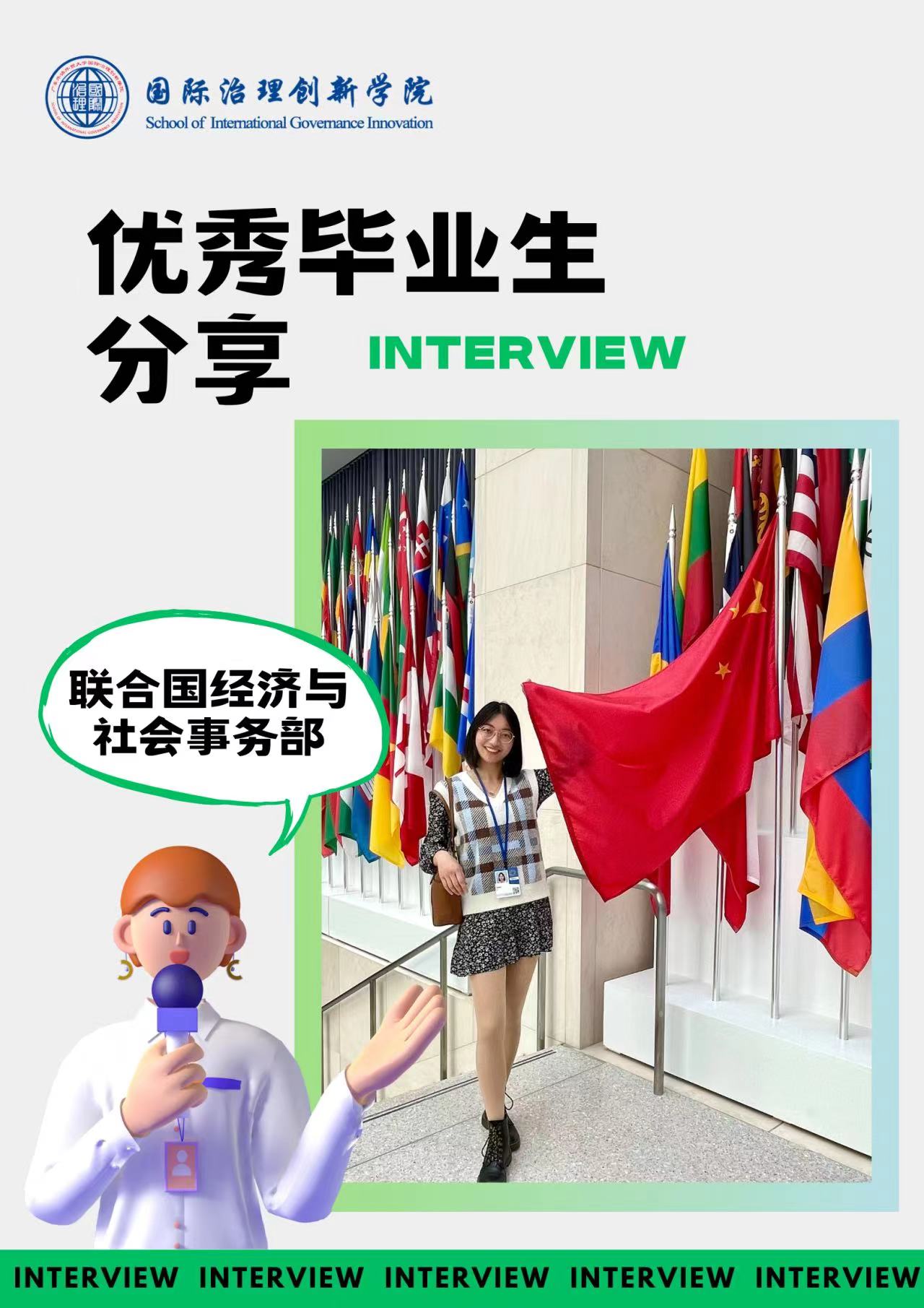 从国际治理创新学院到马里兰大学到联合国,李键敏表示在这段旅程中,国际治理创新学院提供了一个非常重要的平台,每一场讲座的学习、每一场活动的筹备、每一份报告的撰写全方位地提升了她的工作能力。
