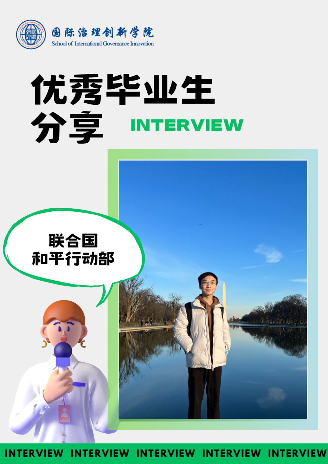 刘小枭,国际治理创新学院、国际商务英语学院2020级学生,2022年获国家留学基金管理委员会支持公派赴美留学,2023年8月获得马里兰大学公共管理硕士学位,同年9月中旬进入联合国和平行动部的政策、评价与培训司进行为期6个月的实习。