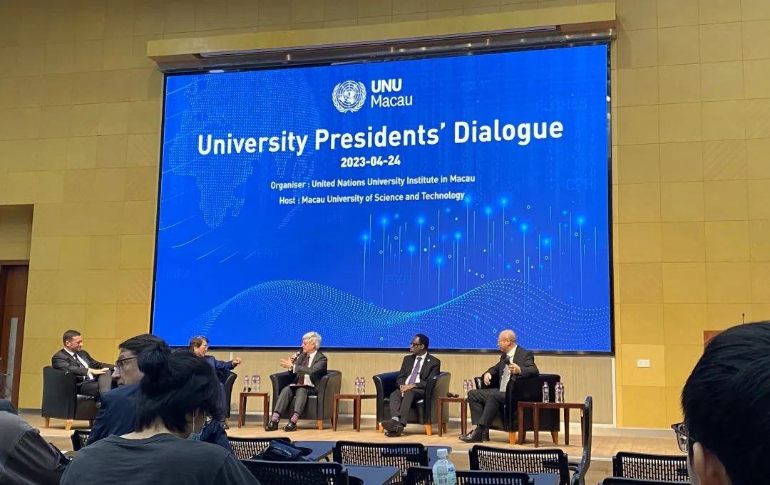 The United Nations World Data Forum Macau Satellite Event “University Presidents’ Dialogue” was held in Macao University of Science and Technology on the afternoon of April 24. Six students, including Tao Jiayi, Yang Siyu, Ding Feng, Wen Huijing, Wang Lingyun and Deng Xinyi from SIGI, attended the forum. At the beginning, Huang Jingbo, Director of the United Nations University Institute in Macau (UNU Macau), gave a brief introduction to the event and introduced the guests: Tshilidzi Marwala, Rector of the United Nations University; Li Xingwei, Rector of the Macau University of Science and Technology; Hui King Man, Vice-Rector of the University of Macau; Álvaro Barbosa, Vice-Rector of the University of Saint Joseph (Macao); and Tim Unwin, UNESCO Chair for Information and Communications Technologies for Development (ICT4D), and Chair of the UNU Institute in Macau International Advisory Board.