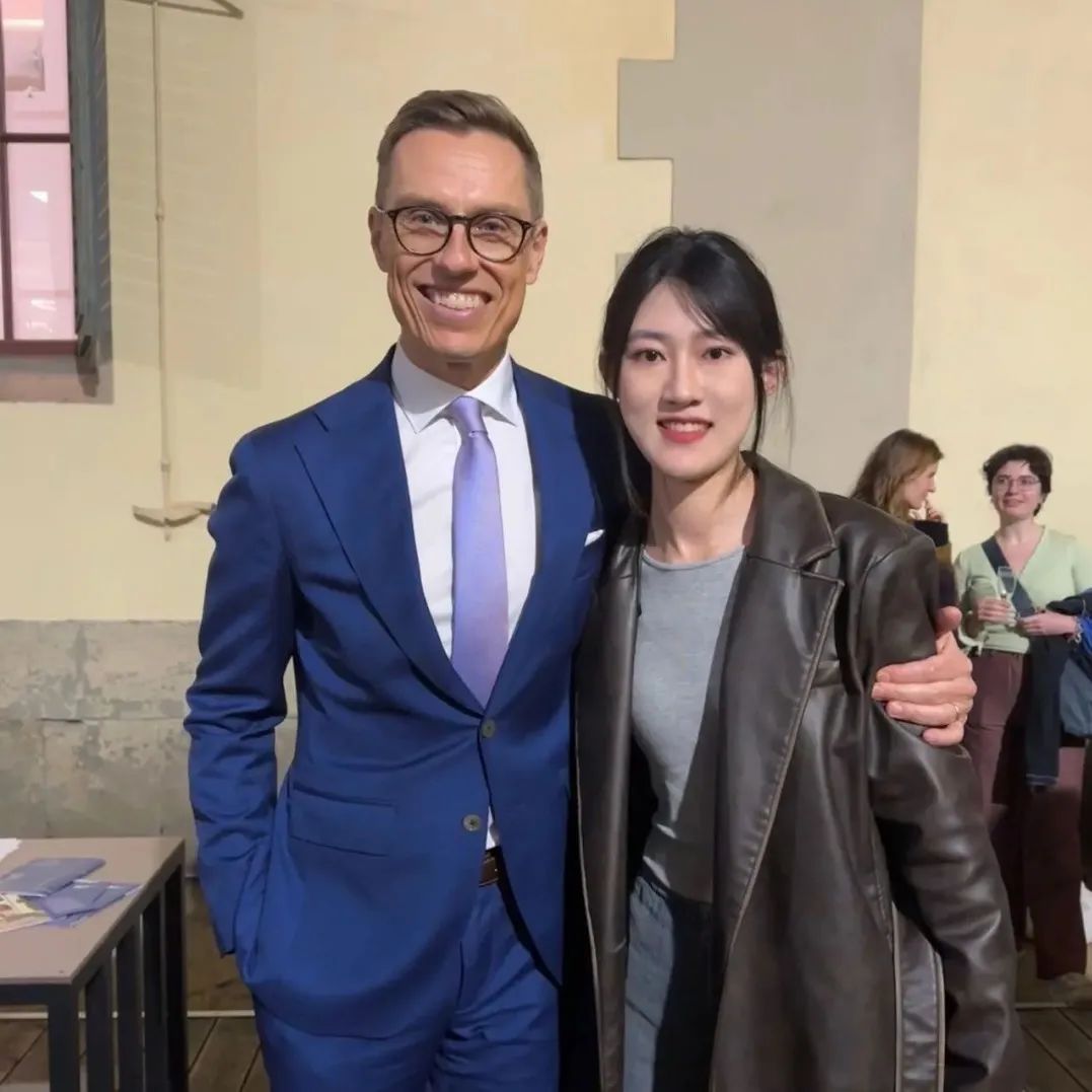Photos of President Stubb with Jing Luo and Peizhe Li from SIGI