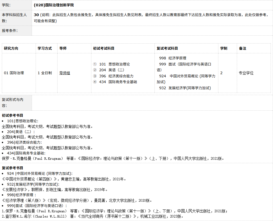 (2)专业型硕士学位专业:国际商务(国际治理)