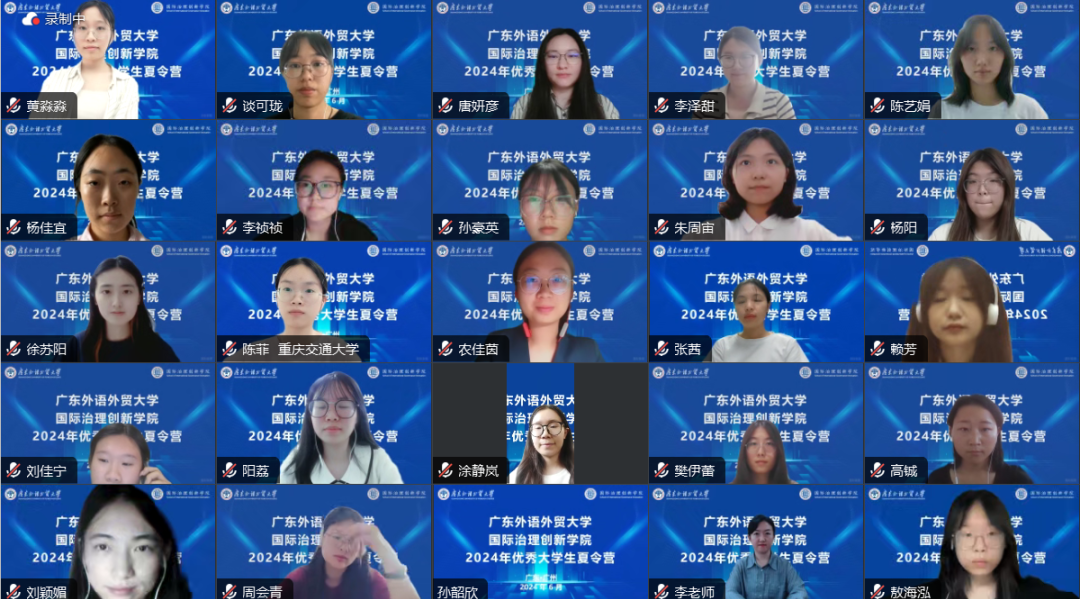 2024年6月19日至21日,广东外语外贸大学国际治理创新学院2024年优秀大学生暑期夏令营如期举行,来自国内多所重点高校的三十位优秀大学生通过审核选拔成功入围参营。本次夏令营通过线上举办,营员们通过参加国际治理前沿讲座、国际组织师兄师姐分享讲座、营员展示和面试考核等环节,度过了丰富充实的学习之旅。