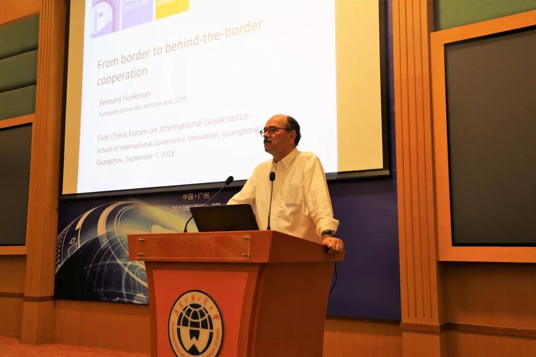 开幕式以后,进入了论坛的主旨演讲阶段,此阶段由陈伟光教授主持。主办方邀请了原世界银行国际贸易局局长、现欧洲大学研究院全球治理研究中心主任伯纳德·霍克曼(Bernard Hoekman)教授作主旨演讲。霍克曼教授亮相北京和广州,首次在中国详细解读“多边贸易体制的未来”高级别专家委员会的最新研究成果《重振WTO多边贸易治理》,分析了WTO作为多边贸易体制的核心所面临的三大挑战,并提出了六大解决方案建议,在一定程度上反映了西方发达国家群体就国际治理领域的重要观点和立场,获得与会相关政府部门领导、嘉宾学者热烈反响。随后论坛紧密围绕伯纳德·霍克曼教授的主旨演讲和研究报告开展专家对话。