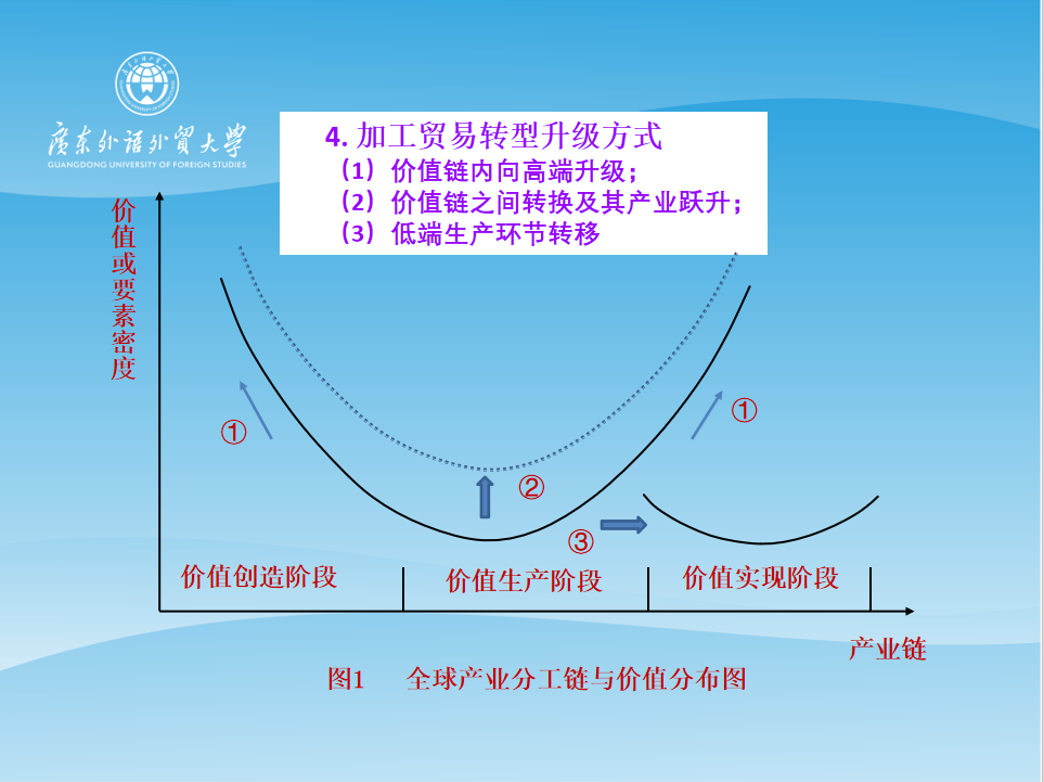 陈万灵教授主讲的内容分为五大部分。第一部分为全球价值链与加工贸易的理论认识,重点阐述了价值链三大环节、三个条件、动力机制、全球价值链治理以及企业在全球价值链中的融入与升级等。第二部分为加工贸易兴起与运行机制,聚焦于改革开放前后加工贸易的兴起,从加工贸易的定义、种类、运行与监管机制、层次等角度全面介绍中国加工贸易。第三部分深入挖掘广东加工贸易的发展状况与存在问题,从起步阶段、快速增长阶段、波动增长阶段、新世纪的发展与升级等时间段展开论述,条理清晰地指出相应问题与转型要求。第四部分系统分析驱动与制约因素两个方面,详细阐释了广东加工贸易转型升级的必然性与发展全过程。最后在第五部分,陈万灵教授介绍了空间置换策略、企业“转内销”策略与企业组织性质转型策略等范例,就前述内容深度思考,总结出众多宝贵的启示。