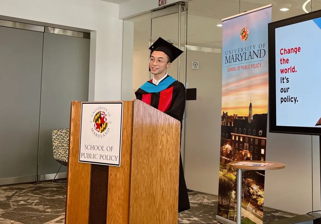 相较于在广外两年充实的学习实践经历,赴美前往马里兰大学攻读公共管理硕士学位则是全身心投入专业学习的一年。在马大的专业课上,刘小枭学习了政策分析、报告撰写等专业理论与技能。他表示,在国际治理创新学院与在马里兰大学的学习也有共通之处,“因为工作需要,在国创院常常需要沟通协调,对个人的组织能力有很高的要求。而在马大则是由于课程特色,小组作业是必不可少的一个环节,我们常常需要跟来自不同国家的同学进行交流,因此团队合作在哪里都是十分重要的。”