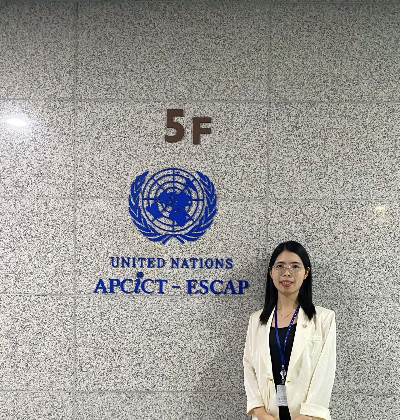 郭青霞在亚太信息通信技术促进发展培训中心大厦