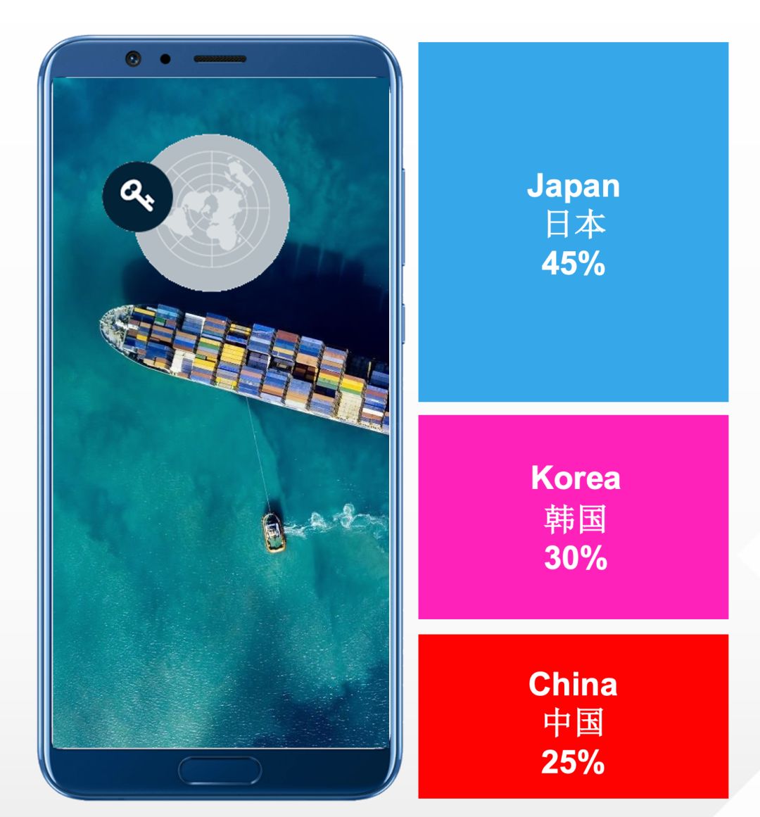 用户可在市场准入地图中找到原产地规则具体条款,其中一项重要条款是累积规则,中国与智利签订的贸易协定允许双边累积,即智利和中国视为一个整体。在这种情况下,中国和智利这个整体在生产手机所贡献的产品价值占比为55%,满足原产地规则中的区域价值成分不低于40%的标准。