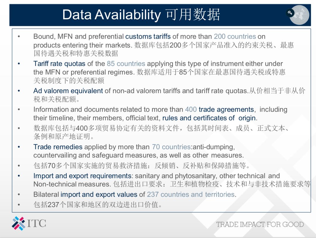 4. 对于研究人员和贸易分析人员,市场准入地图可以做到: